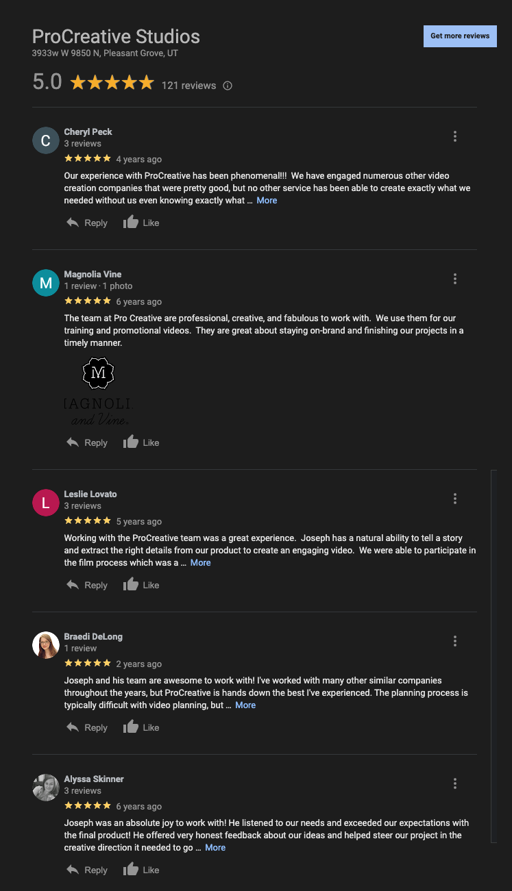 © 2025 ProCreative LLC. All rights reserved. ProCreative Studios, 3933 w 9850 n Pleasant Grove, UT 84062. joseph@funnysalesvideos.com 1(801) 870-1809